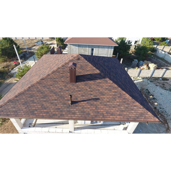 SBS-модифицированный битум в основании придаёт черепице особо высокую пластичность. Поэтому она не трескается на морозе и не коробится в жаркую погоду. Кроме того, её удобно сгибать при монтаже криволинейных участков кровли