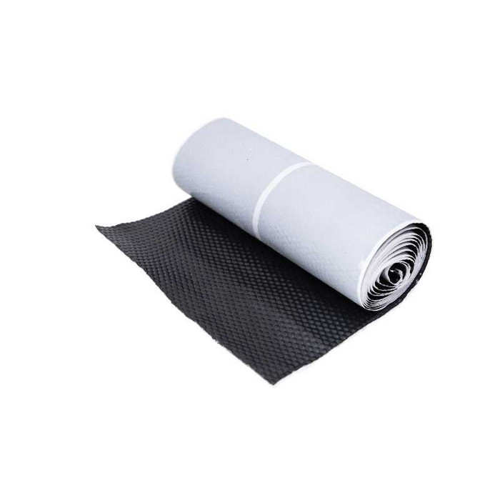 Лента сделана из гофрированного алюминия, аналог такой ленты используется в окладах для мансардных окон. На обратную сторону наносится очень долговечный и не теряющий своих свойств при высокой и низкой температуре бутил-каучуковый герметик. Такое покрытие легко взаимодействует с любой обезжиренной и чистой основой.