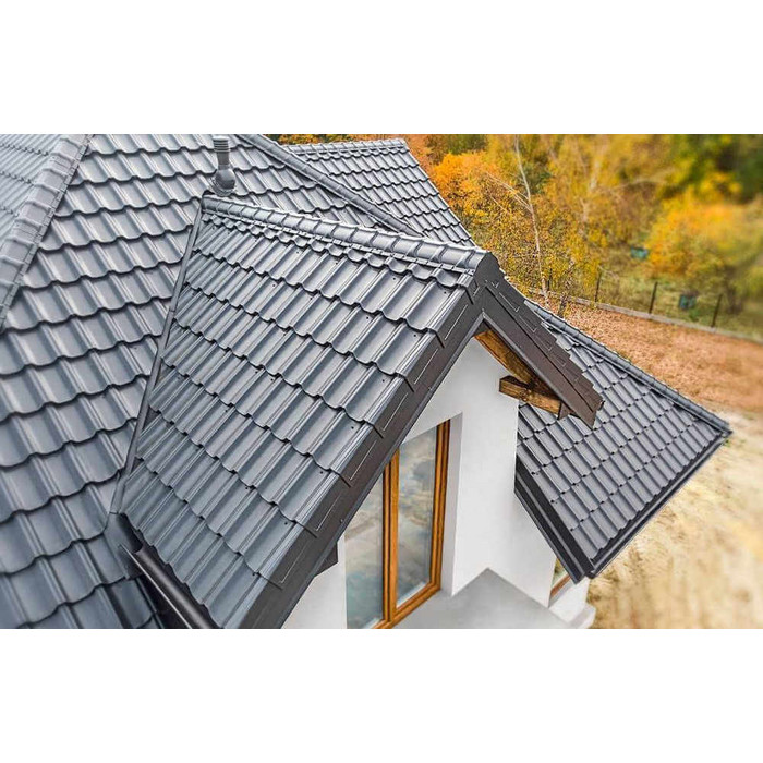 Металлочерепица Grand Line Kvinta plus 0,5 Quarzit RAL 7024 Мокрый асфальт | c 3D резом