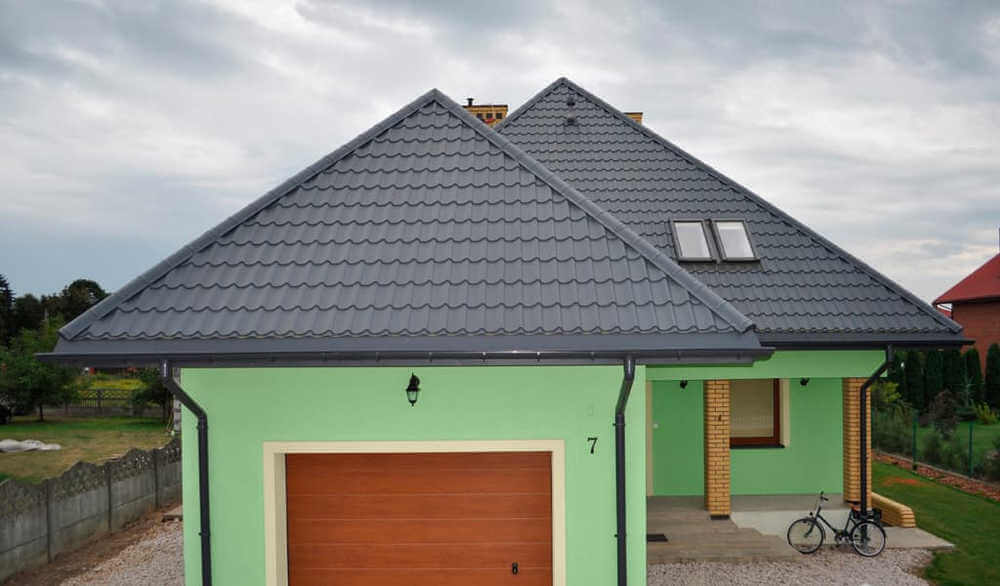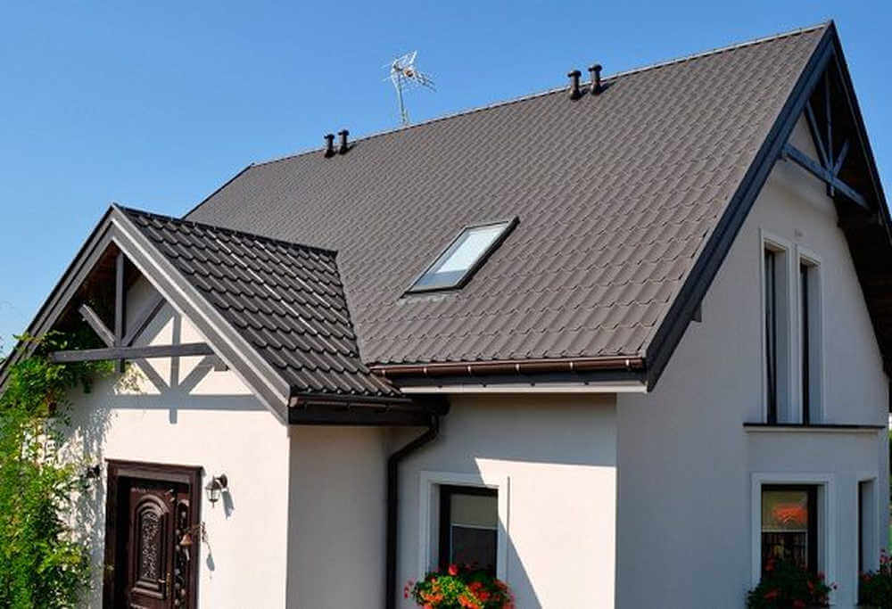 • Кровля защищена от механических воздействий, так как в основе металлочерепицы сталь толщиной 0.45 мм (с учётом металла, цинкового и полимерного слоя).
