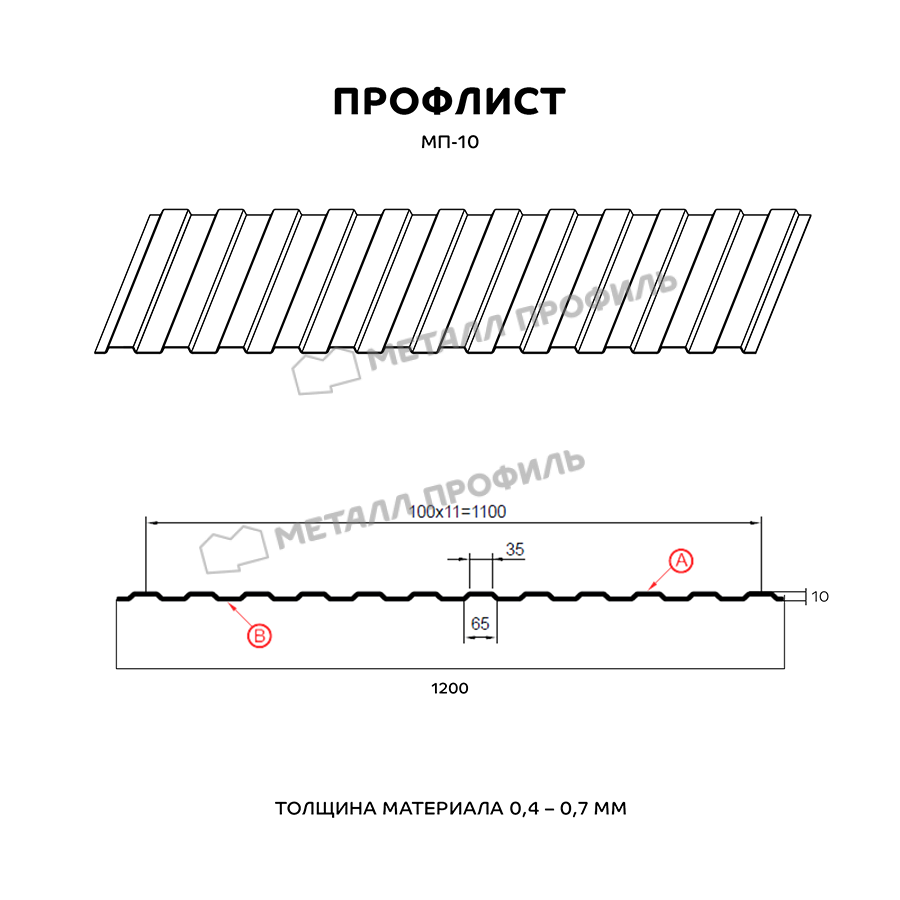Один из популярных в Твери видов профнастила категории «стеновой». Его характеризует не очень выразительной высотой волны – 10 мм и одинаковым с обеих сторон рисунком. пропорциям, МП-10 имеет широкую сферу применения. Чаще всего этот профлист используется для облицовки фасадов частных и торговых зданий, оборудования стен и перегородок, создания заборов, а также как материал подвесного потолка в индустриальных сооружениях. Для производства профиля МП-10 используется высококачественная сталь холодного проката 0,4-0,7 мм толщиной. Металлическая основа оцинкована, а также обрабатывается полимерным составом. Декоративное полимерное покрытие из ассортимента Компании Металл Профиль прекрасно впишется в цветовую палитру вашего объекта. К тому же оно обеспечит металлу усиленную защиту от выгорания, механических воздействий, влажности.