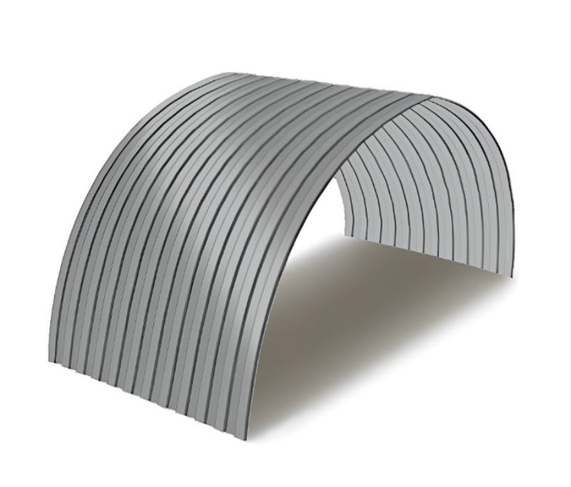 Профнастил для арочных перекрытий используется прежде всего при строительстве различных арочных конструкций, у которых существует определенный изгиб по радиусу. Он активно применяется при возведении ангаров, складов, зернохранилищ, различных округлых и полукруглых вариантов крыш и кровли. С его помощью можно построить как большое здание сельскохозяйственного назначения, так и красивый эстетичный навес для автомобиля площадью несколько квадратных метров. Основной отличительной особенностью данного вида профлиста является его изогнутая по радиусу форма, сформированная на специально предназначенной для этого профилегибочной линии. Радиус изгиба может быть самый разнообразный, и зависит прежде всего, от требований заказчика и характеристик будущего здания. Плюсами такого материала являются как его изготовление в заводских условиях, так и геометрическая точность, в результате чего стыки листов практически не видны и конструкция выглядит действительно монолитной.