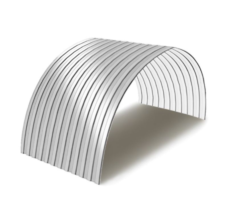 Оптимальный вариант арочного профиля выбирается исходя из геометрии листа, высоты гофры, толщины. Также учитывается наличие оцинковки или полимерного покрытия для защиты от влияния окружающей среды.