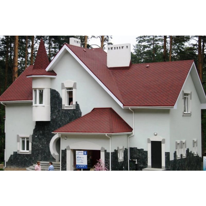 Гибкая черепица ТЕХНОНИКОЛЬ серии УЛЬТРА – это штучный битумосодержащий кровельный материал. Изготавливается нарезанием листов из рулонного материала, получаемого путем пропитки и покрытия стекловолокнистой основы битумно-полимерным вяжущим, с последующим нанесением различных видов защитных покрытий. В серии УЛЬТРА представлены две формы нарезки: «соната», «аккорд». Гарантийный срок службы – 50 лет.